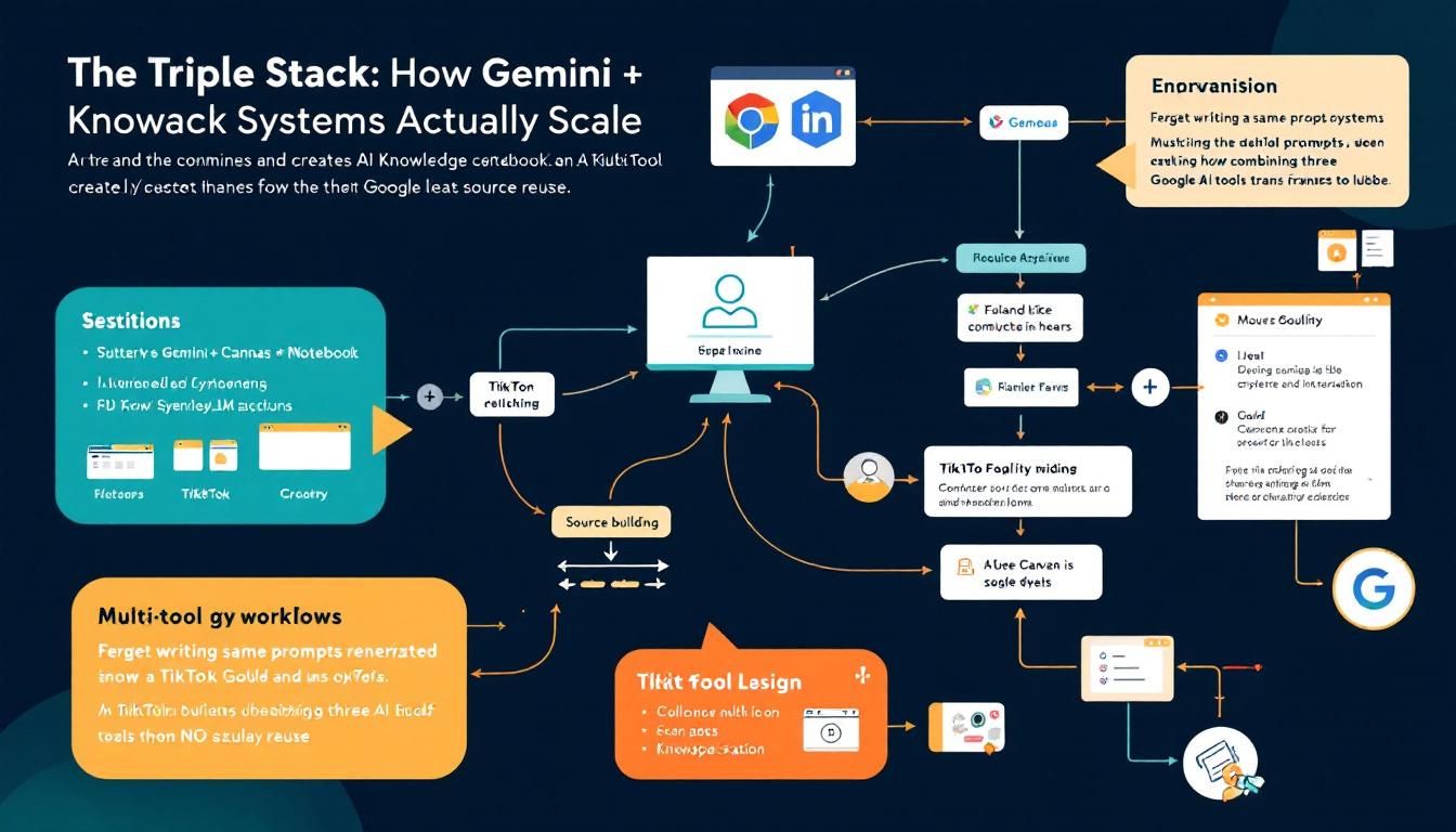 Forget writing the same prompts over and over. A TikTok creator just revealed how combining three Google AI tools transforms one knowledge source into unlimited outputs — web pages, interactive apps, validation tools — all from the same foundation.